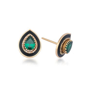 Gold Malachite Enamel & Sapphire Dangle Earrings