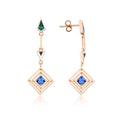 Gold Malachite Enamel & Sapphire Dangle Earrings